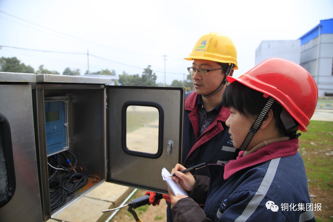 / 近日,新橋礦業(yè)公司技改擴建后的污水處理新系統(tǒng)明渠流量計柜前,兩名員工正在觀察記錄外排水流量。
