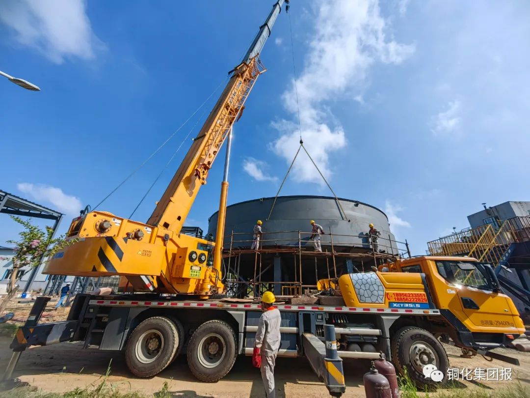項目完工投用后,每年可處理選礦廢水247.5萬立方米、酸性廢水1000萬立方米,去除COD1485噸、硫化物146.03噸、重金屬錳208噸,在保障原生產(chǎn)線正常運行的同時,顯著降低相關(guān)污染物排放,實現(xiàn)外排水水質(zhì)穩(wěn)定達標(biāo),有效保護當(dāng)?shù)厮h(huán)境,環(huán)境效益和社會效益顯著。上圖為吊裝作業(yè)現(xiàn)場。