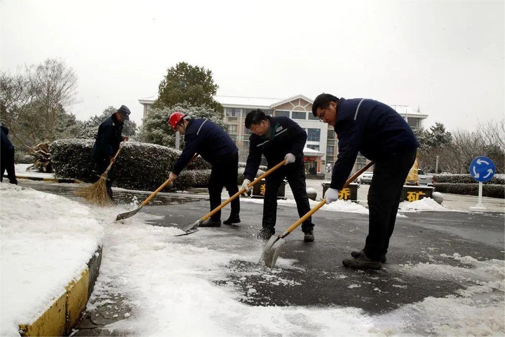 生產(chǎn)管理部組織員工清理辦公樓廣場(chǎng)積雪,確保進(jìn)出員工、車(chē)輛安全通行。