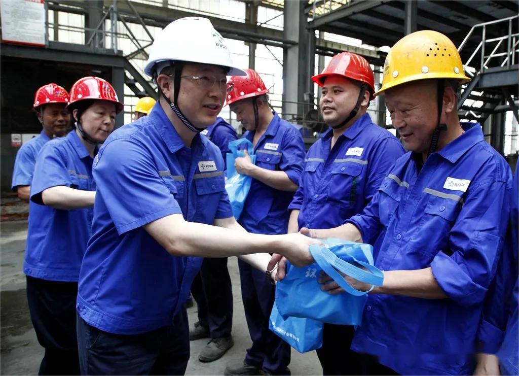 在磨浮車間,吳亞和陳彬?qū)⒁环莘荨扒鍥觥倍Y包送到員工手中,感謝大家戰(zhàn)高溫,守崗位,為公司上半年生產(chǎn)經(jīng)營做出的突出貢獻(xiàn),同時(shí)叮囑大家注意休息、勞逸結(jié)合。
